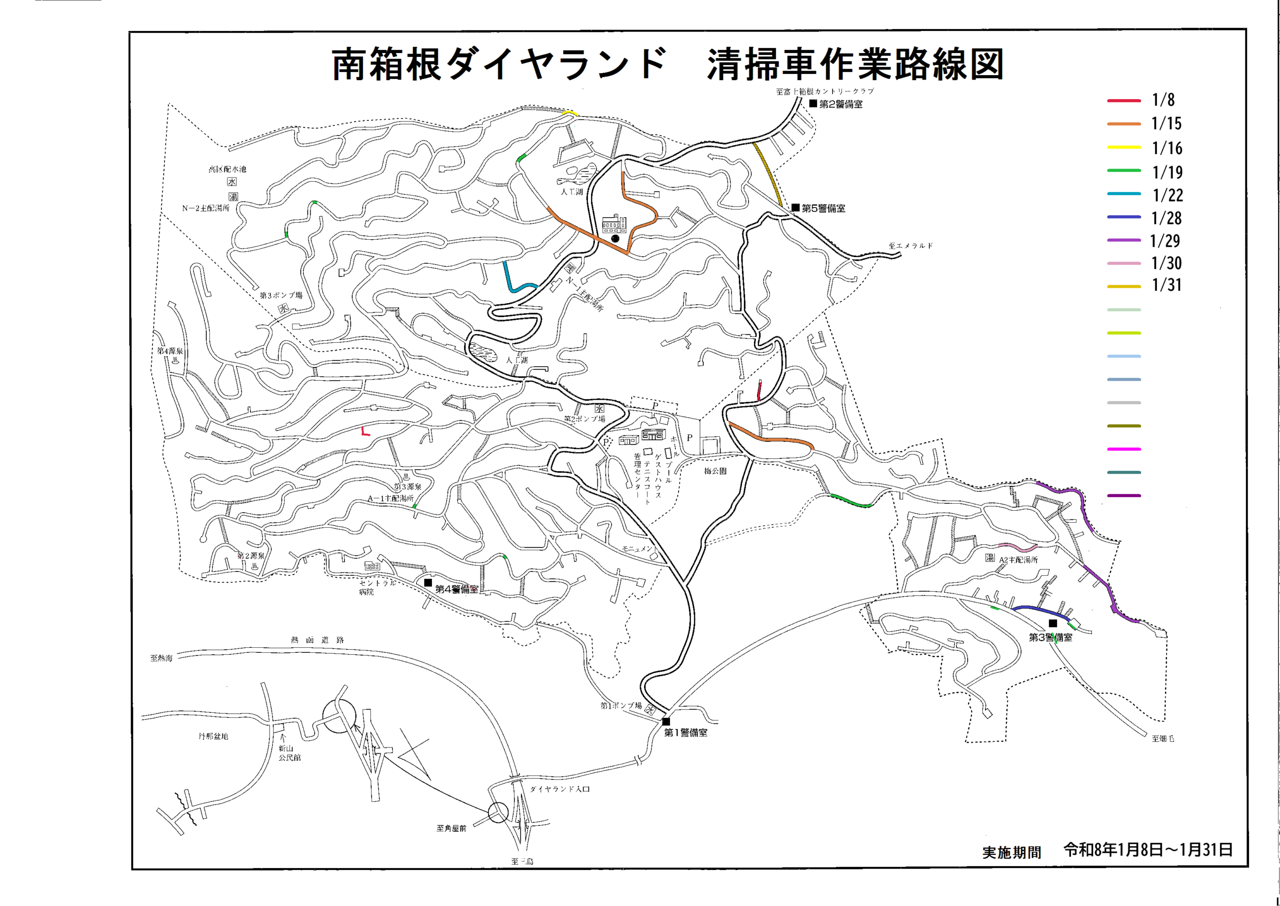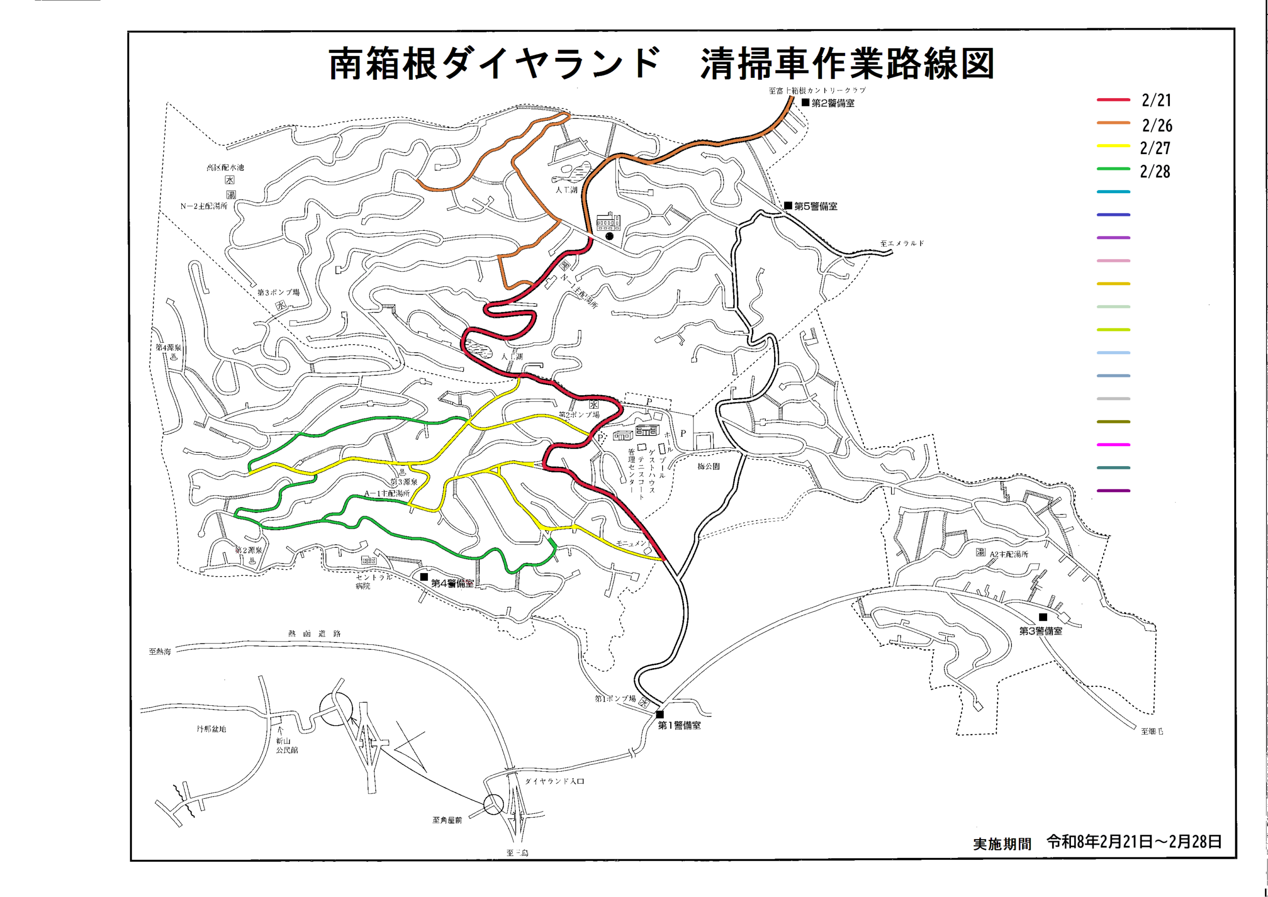 1・2月環境整備実施報告By user / 2026年3月16日 2026年1月・2月に実施した環境整備作業内容をご報告いたします。 ▼文字をクリックするとリンクに飛びます▼ 1月 【作業報告】 【作業写真】 【作業実施箇所地図(A地区西)】 【作業実施箇所地図(A地区東)】 【作業実施箇所地図(B地区西)】 【作業実施箇所地図(B地区東)】 【清掃車稼働状況 実施路線図】 2月 【作業報告】 【作業写真】 【作業実施箇所地図(A地区西)】 【作業実施箇所地図(A地区東)】 【作業実施箇所地図(B地区西)】 【作業実施箇所地図(B地区東)】 【清掃車稼働状況 実施路線図】